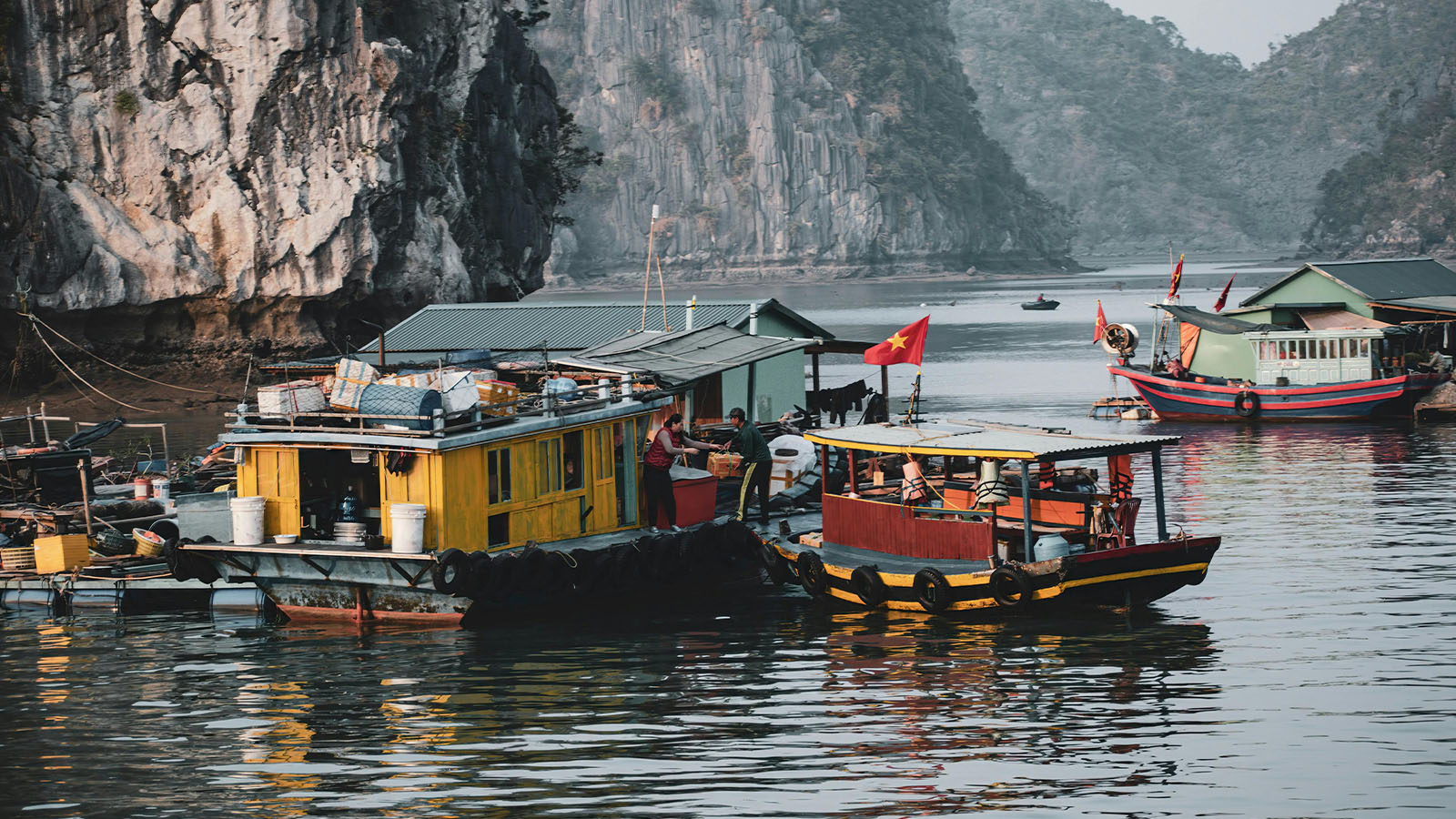 13:00 - 15:30 Uhr: Mittagessen an Bord mit köstlichen Meeresfrüchten und traditionellen vietnamesischen Gerichten. Währenddessen beginnt die Kreuzfahrt durch die beeindruckende und sagenhafte Landschaft der Halong-Bucht mit ihren Inseln, Felsen, Karstformationen und schwimmenden Dörfern.