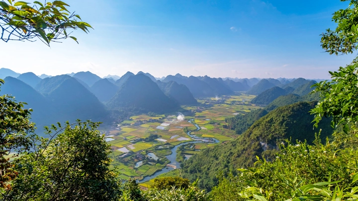 Das Touristendorf Quynh Son in Lang Son bietet ein Panorama von seltener Schönheit, zugleich grandios und beruhigend. Im Herzen eines weiten, grünen Tals gelegen, wird es von majestätischen Karstbergen umrahmt, die eine natürliche Kulisse voller Harmonie zeichnen. Hier zeigt sich die Natur in ihrer reinsten Form: endlose Reisfelder, mit Morgennebel bedeckte Hügel und sanft dahinplätschernde Bäche zwischen den Dörfern.