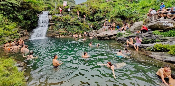 Ein Bad im Du Gia-Wasserfall ist eine erfrischende und belebende Aktivität. Hier können Sie in das kühle, klare Wasser eintauchen, das von den grünen Bergen umgeben ist. Der Wasserfall ist ein idealer Ort, um sich zu entspannen, dem Lärm des Alltags zu entfliehen und unvergessliche Momente in der Natur zu genießen.