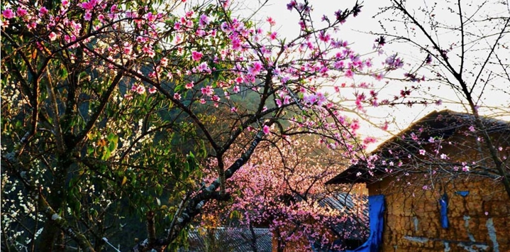 Ohne jeden Zweifel ist der Frühling die magischste Zeit, um Lao Xa zu besuchen. Dann explodieren die Pfirsich- und Pflaumenbäume in einem zartrosa und weißen Blütenmeer. Dieser romantische Anblick bildet einen atemberaubenden Kontrast zur strengen und erdigen Schönheit der traditionellen trinh tuong-Lehmhäuser. Diese poetische Szenerie hat jedoch ihren Preis: In dieser Zeit, etwa ein bis zwei Monate nach dem Mondneujahr (Tet), kann es im Hochland noch empfindlich kalt sein.