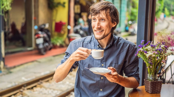 Es gibt Cafés entlang des gesamten Abschnitts der „Zugstraße“. Vertreiben Sie sich die Wartezeit mit einem Eierkaffee (Cà Phê Trứng) oder einem Bia Hà Nội – je nach Vorliebe – idealerweise im Café Tram Station im Obergeschoss (30/10A Điện Biên Phủ). Sind Sie Feinschmecker? Schlagen Sie zwei Fliegen mit einer Klappe: Essen und beobachten Sie den vorbeifahrenden Zug im Restaurant Ray Quan – 8A Nguyễn Khuyến Straße.