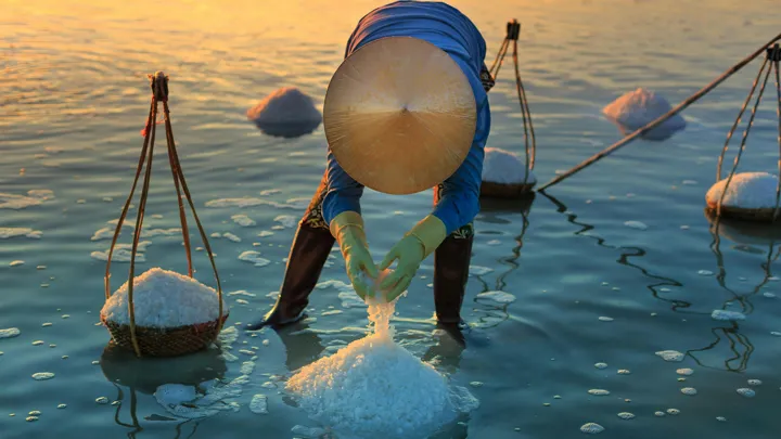 Auf dem Weg zum Südchinesischen Meer teilt sich der Mekong in zwei Arme und dann in neun Mündungsarme und durchquert neun vietnamesische Provinzen. Wasser ist für das tägliche Leben in dieser fruchtbaren Region voller Mangrovenbäume, Reisfelder, Obstplantagen auf Inseln, Gemüsegärten, Fischfarmen und Zuckerrohrfeldern unerlässlich. Um Ihnen eine Vorstellung zu geben: Mehr als die Hälfte des in Vietnam angebauten Reises stammt aus dem Mekongdelta. Sie können mit dem Boot reisen und den Wasserbüffeln beim Pflügen der Felder zusehen, während Sie auf dem schwimmenden Markt Früchte wie Mangos oder Rambutans kaufen. Schauen Sie sich die vielen geführten Touren an, die von regionalen Reiseveranstaltern angeboten werden und Sie zu Workshops zur Herstellung von Reispapier oder Nudeln oder zum Verstecken der Vietcong in den Sümpfen führen. Erfahren Sie mehr über den Fluss und entdecken Sie die Kultur, Landschaften und das tägliche Leben entlang des Mekong.