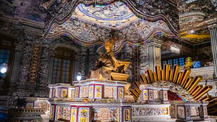 Außerhalb der Kaiserstadt beherbergt Hue mehrere Königsgräber, jedes ein spektakuläres Beispiel vietnamesischer Grabarchitektur. Neben dem Mausoleum von Tu Duc sind auch die Gräber von Khai Dinh und Minh Mang einen Besuch wert.